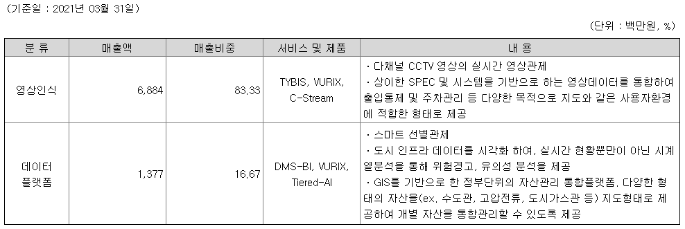 21년 3월 31일 기준 매출비중은 영상인식 83%, 데이터플랫폼은 16%가 차지하는데, 시간이 흐를수록 데이터는 쌓이고 데이터는 의사결정에 도움을 주는 의미있는 데이터 사업이 될수도 있을것 같다.