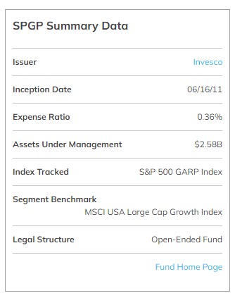 인베스코/11년 6월 16일 출시/수수료 0.36%/ $2.58b자산운용/ 추종지수, S&P 500 GARP Index