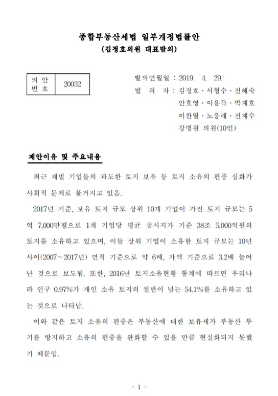 [2020032] 종합부동산세법 일부개정법률안 (김정호의원 등 10인)