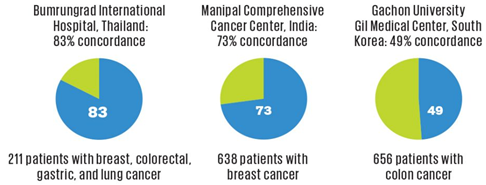※ 왓슨 포 온콜로지를 도입한 가천 길병원의 경우, 656명의 대장암 환자에 대한 왓슨의 권고사항 일치율이 49%로 나타남