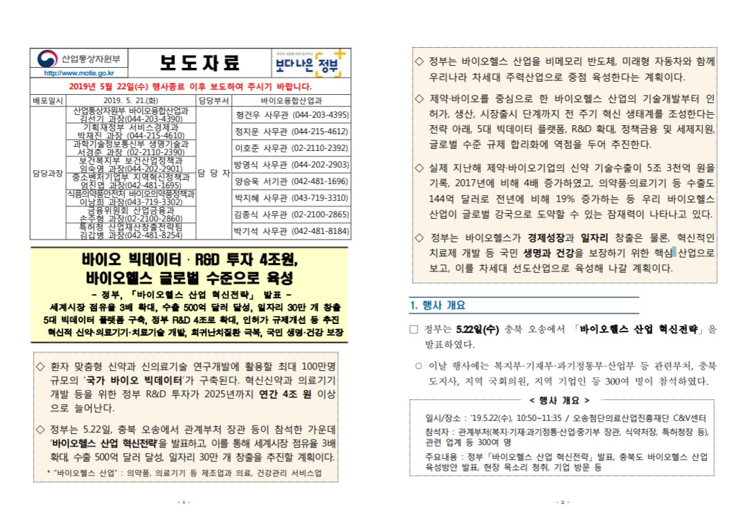 ◇ 정부는 바이오헬스가 경제성장과 일자리 창출은 물론, 혁신적인
