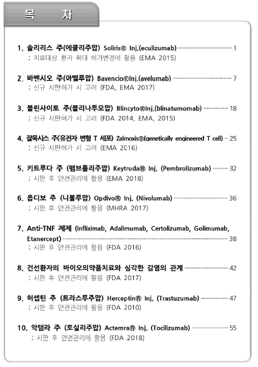 ○ 발행목적: 식품의약품안전처에서 수행한 연구 과제인 「실제임상자료(Real World Data,RWD)를 활용한 허가심사체계 기반 마련 연구 (성균관대학교 신주영, 2018)」 의 연구 수행을 통해 획득한 정보를 관련 분야 연구자와 심사관련 종사자에 제공하기 위함