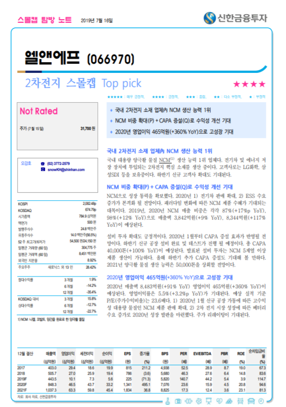 - 생산능력 확대는 2020년부터 본격화될 것으로 기대