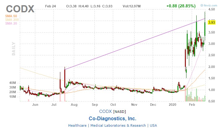 유타주 법인 Co-Diagnostics, Inc.는 분자 진단 테스트 개발을 위한 고유하고 독점적인 플랫폼을 가진 분자 진단 회사로, 새로운 첨단 진단 기술을 개발하고 제조하며 판매한다. 회사의 기술은 핵산 분자(DNA 또는 RNA)의 검출 및/또는 분석을 사용하여 설계된 시험에 활용된다. 회사는 또한 자신의 독점 기술을 사용하여 전염병이 아닌 다른 산업에서 사용할 유전자 표지를 찾고 특정 고객에게 이러한 테스트의 사용을 허가한다.