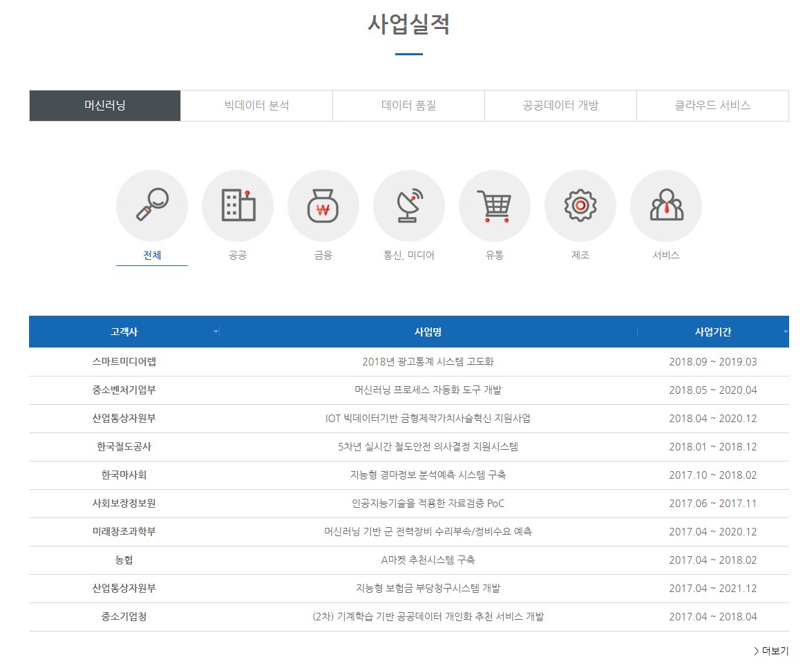 사업에대해서 이야기 하자면 머신러닝, 빅데이터, 데이터품질, 시스템 운영 크게 4가지로 나뉠수있다.