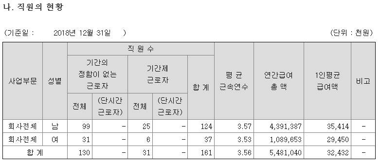 주목할부분은 직원의 급여인데 남자 평균 1인급여액이 3천5백 수준이다. 위에 언급했던 과제의 참여인원을 보면 상당히 많은사람이 참여하는 것으로 볼수있는데 개발인력이 일을 분담하여 프로젝트를 수행함을 알수있다. 이게 직원입장에서 급여는 그다지 높은편은 아니다. 다만 투자자입장에서는 조직을 잘관리한다고 할수있는 것이라 볼수있겠다.