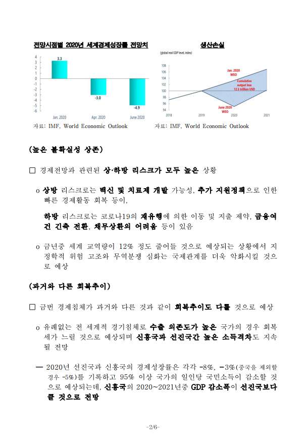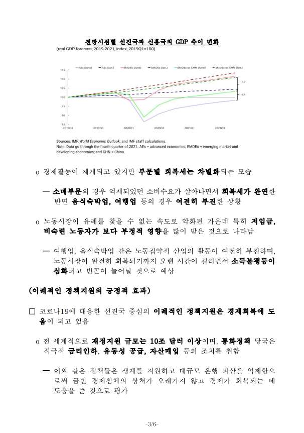 으로 예상되는데, 신흥국의 2020~2021년중 GDP 감소폭이 선진국보다