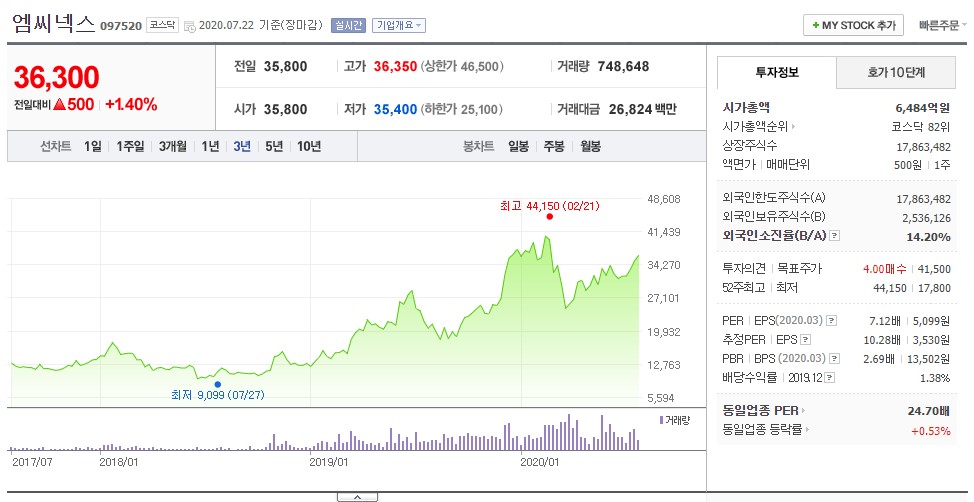 엠씨넥스의 최대주주는 민동욱 대표이사로 20년 3월 코로나사태로 인해 코스닥이 폭락당시 20년 3월 지분을 0.11% 가량 늘린 상황이다. 특수관계인의 지분을 포함하면 27.77% 가량 되는 셈이다.