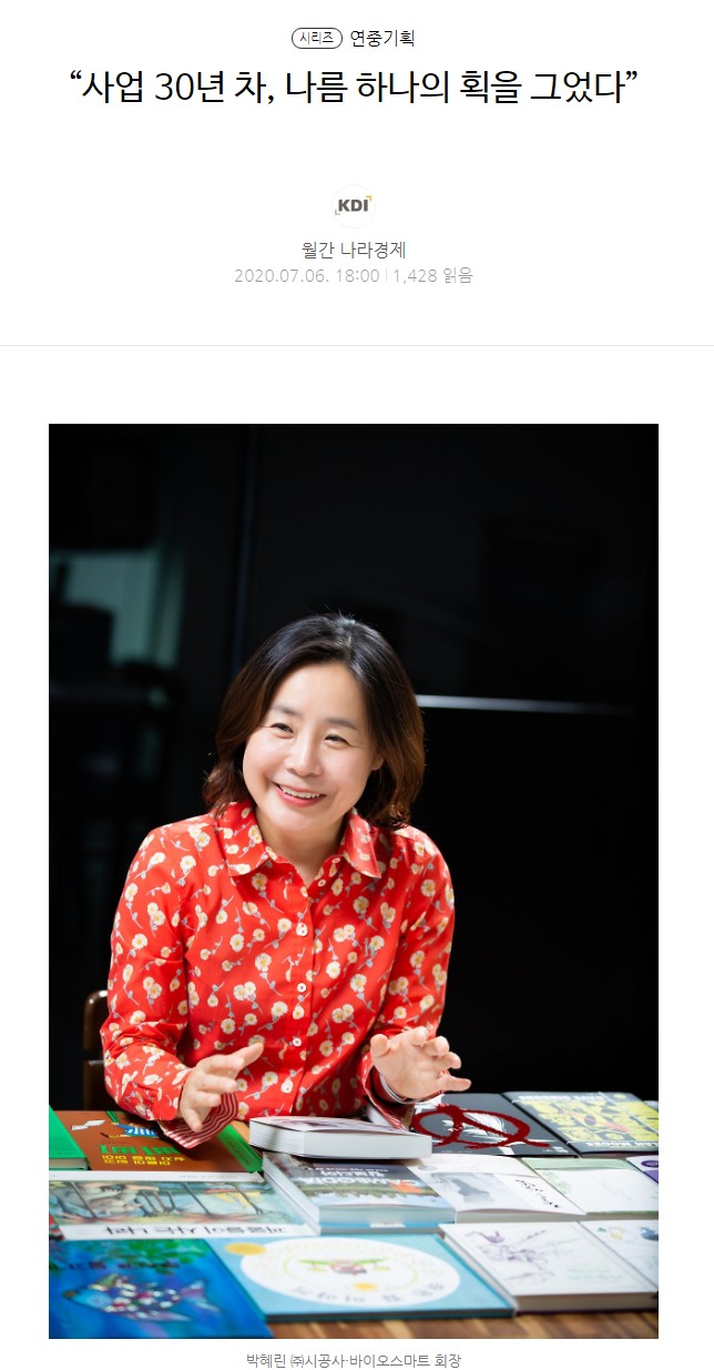 바이오스마트가 상한가를 기록했다. 1회 검사로 코로나 무증상 감염도 100%판정 한다는 기사때문인것으로 풀이된다. AMSBIO 진단키트의 응급용 긴급사용 승인제품으로 인한 실적기대감으로 인한 매수세영향을 받을것으로 보인다. 이미 7월 24일 한차례 특징주로 언급되었으나 주가는 별 힘을 받지 못했다. 재미있는것은 얼마전의 스토리이다. 바이오스마트의 박혜린회장은 KDI와의 인터뷰에서 의미심장한말을 남겼다.