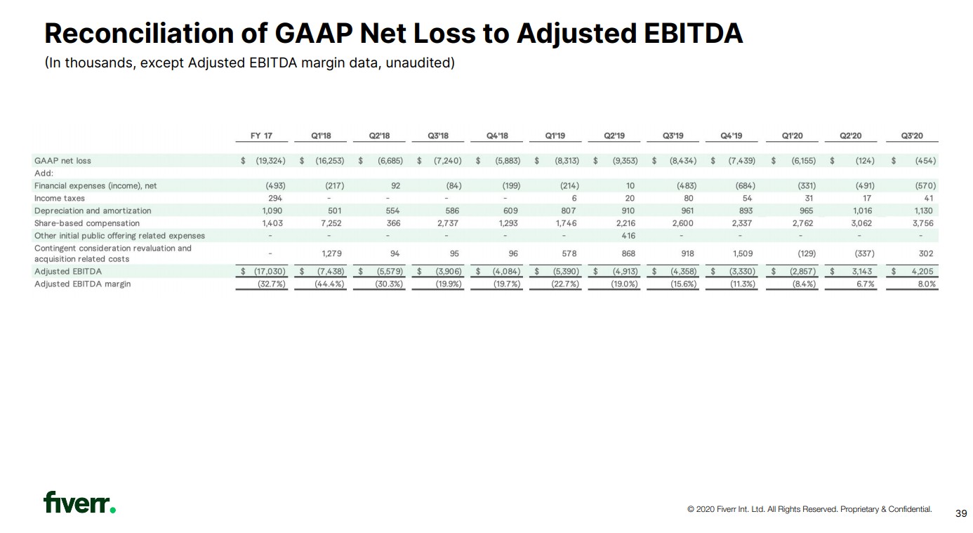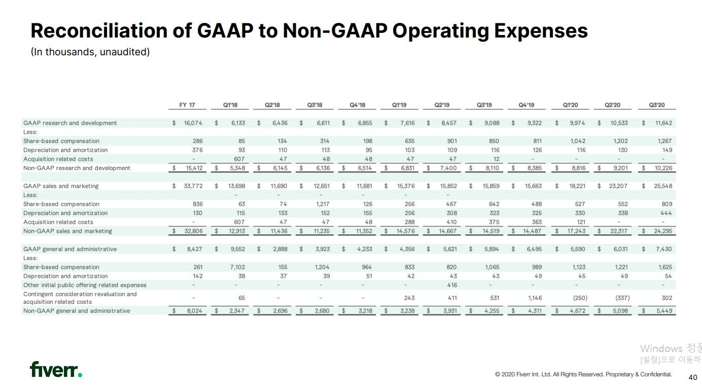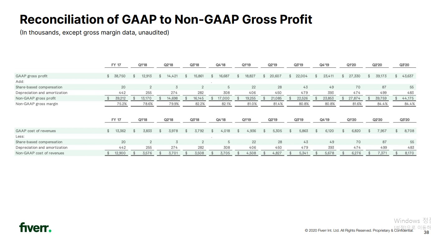 Fiverr는 주로 거래 수수료와 서비스 수수료를 통해 수익을 창출한다. Gross profit 을 보면 분기별 성장을 눈으로 확인할 수 있다.