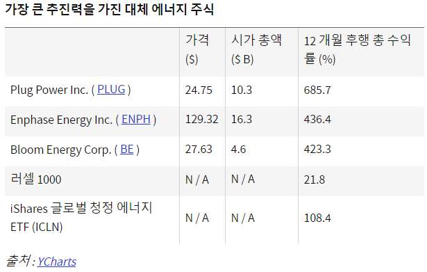 이들은 지난 12 개월 동안 가장 높은 총 수익률을 보인 대체 에너지 주식입니다.