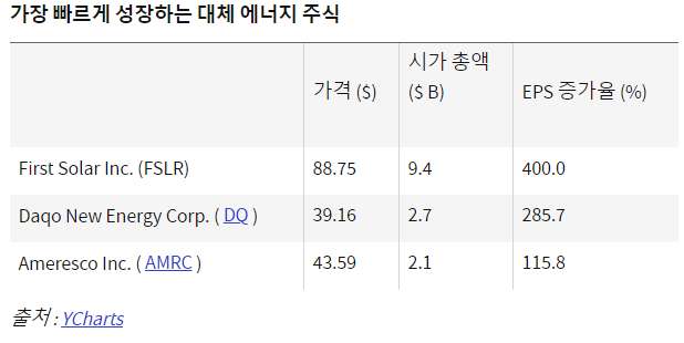EPS증가율이 눈에 띄게 높은 회사는 비지니스가 성장하고 있다는 증거이므로 First Solar, Daqo New Energy, Ameresco 같은 기업은 계속 눈여겨볼 필요가 있습니다.