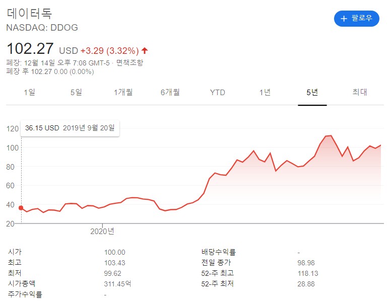 클라우드 기반 애플리케이션 모니터링 서비스를 제공하는 Datadog은 3 분기에 61 %의 매출 성장을 달성했으며 더 중요한 것은 1,100 명 이상의 고객 이 연간 반복 수익에서 $ 100,000 이상을 창출했습니다.