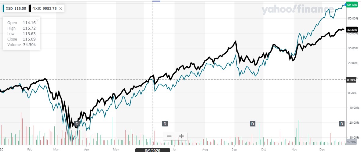 XSD ETF는 반도체 주식을 동일 비중으로 추종하는 ETF이다. 대형,중형,소형에 투자할수있으며 다른 ETF대비 소형 회사가 다수 포함될수 있다는 것을 특징으로 한다. SSGA에서 SPDR이라는 브랜드로 06년 1월 출시한 개방형펀드이며 운용수수료는 0.35%이다. 운용자산규모는 $799.00M 이다. 평균스프레드는 0.07%이다.