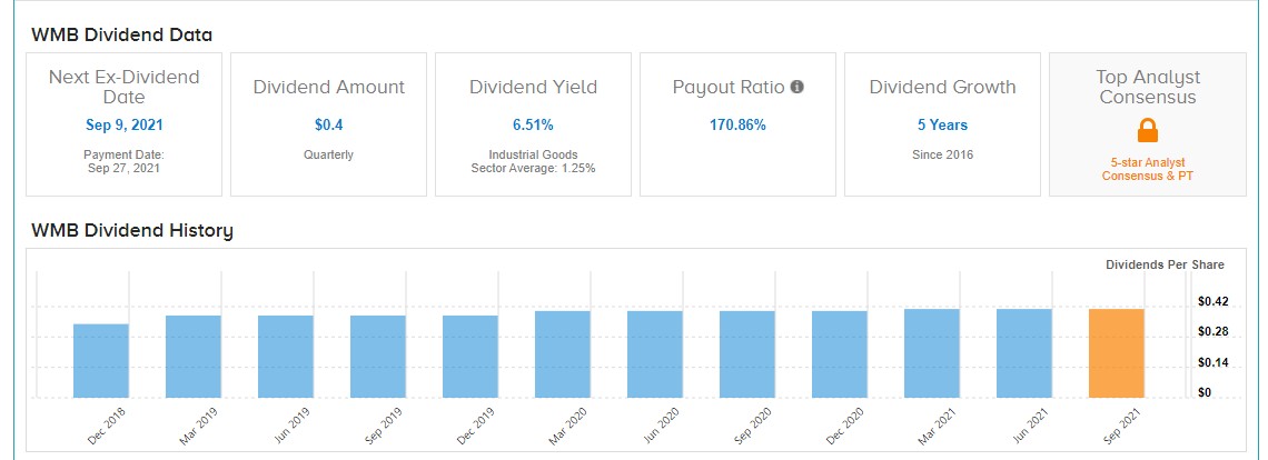 배당금은 $0.4, 배당율은 6.41% 배당성장은 5년을 이어오고 있습니다. 배당성향은 170.86%입니다. 높은편이죠.