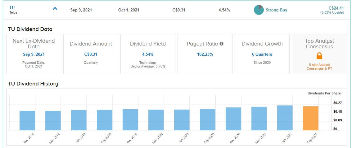 TELUS Corp(TU)의 배당금은 $0.31, 배당율은 4.54% 6년 연속배당을 이어가며 애널리스트 목표가는 $24.41 제시합니다. 매출은 완만한 상승곡선을 그리고 있습니다.
